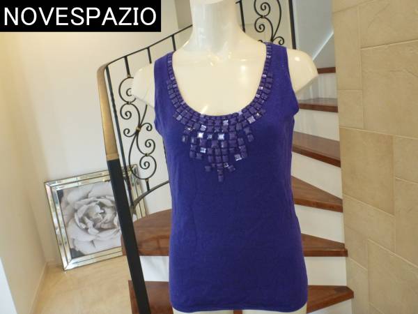 2.5万 美品 NOVESPAZIOノーベスパジオ★紫 パープル系 ビジュー ノースリーブセーター 38 M相当