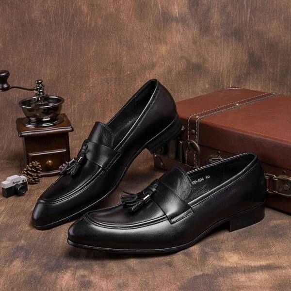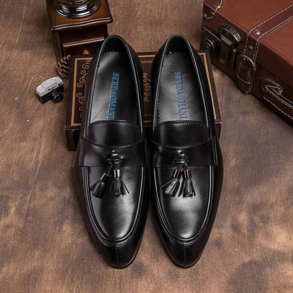 本革 牛革 レザー メンズビジネスシューズ 紳士靴 タッセルローファー ヨーロピアン★ブラック SE1y 24cm