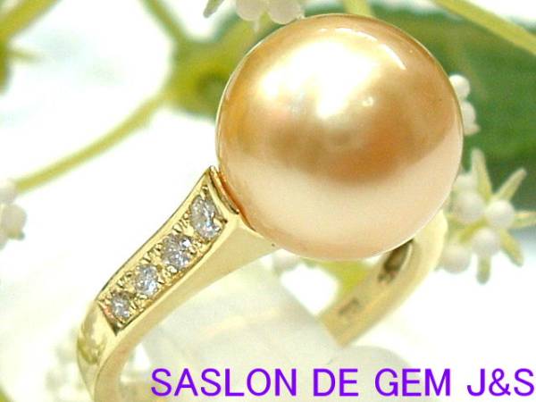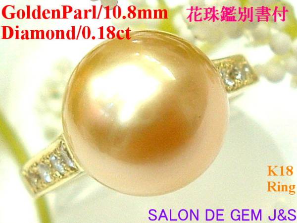 【新品】【花珠鑑別書付】【K18:高級天然ゴールデンパール/ダイヤモンドリング】P10.8mm/D0.18ct/#10/総重量:5.1gの重量感【送料無料】