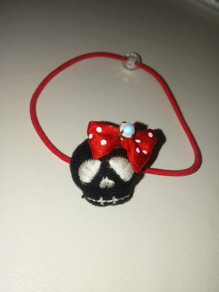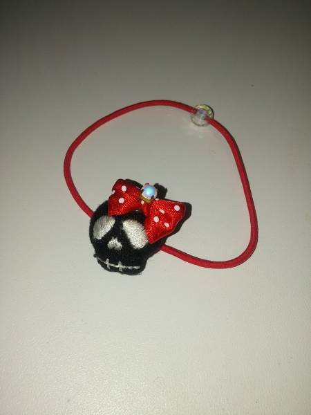 ☆ヘアゴム ドクロ ドット リボン 赤