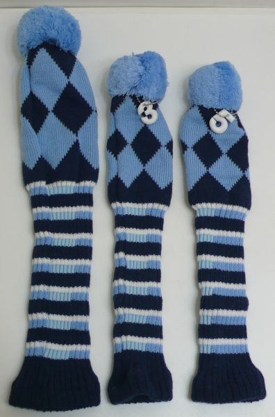 | ニット製ヘッドカバー 3点セット ライトブルーxネイビー | |||