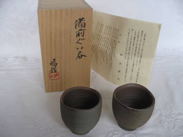★ 備前 ぐいのみ★松本勝哉 作 ★ 共箱入り★未使用・ 本物 ・デパート購入品