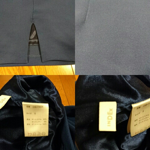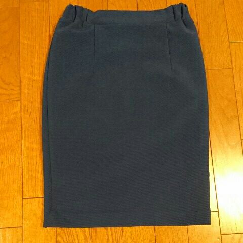 ブルー、生地はストレッチ素材で、格好いいスカートです。細かいことが気にならないご希望の方に