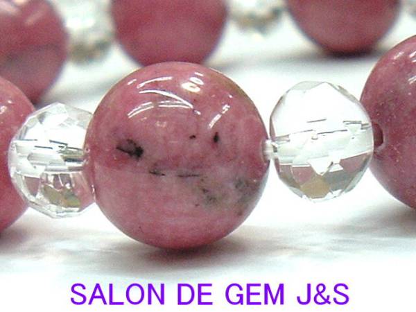 【高級天然ロードナイト(バラ輝石):12.0mm珠11個】と【高級本水晶11個】