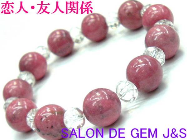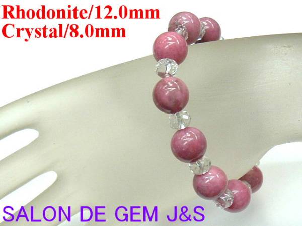【恋人:友人関係】【高級天然ロードナイト(バラ輝石)&天然クリスタル 風水・開運ブレスレット】12.0mm/8.0mm/15cm