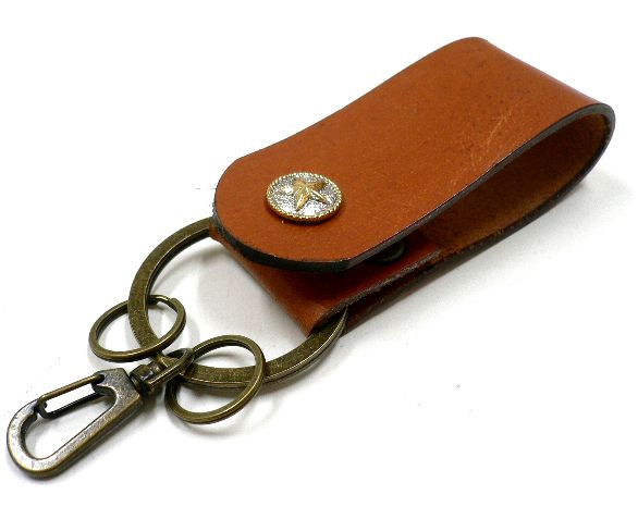 牛革ベルトループ キーホルダー ブラウン/星メタルコンチョ付/ALL20%OFF
