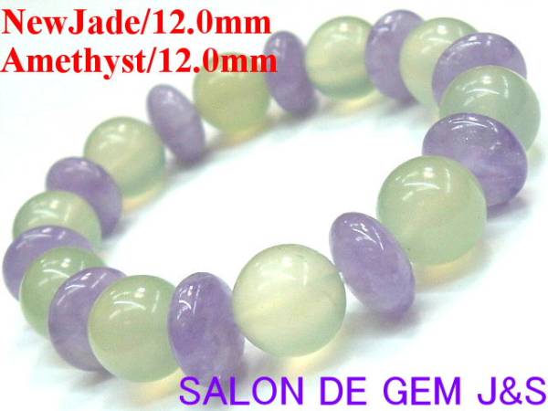 【長寿/健康/富の石】【高級天然ニュージェード/天然アメジスト 風水・開運ブレスレット】12.0mm/15cm