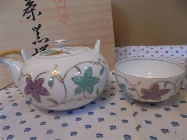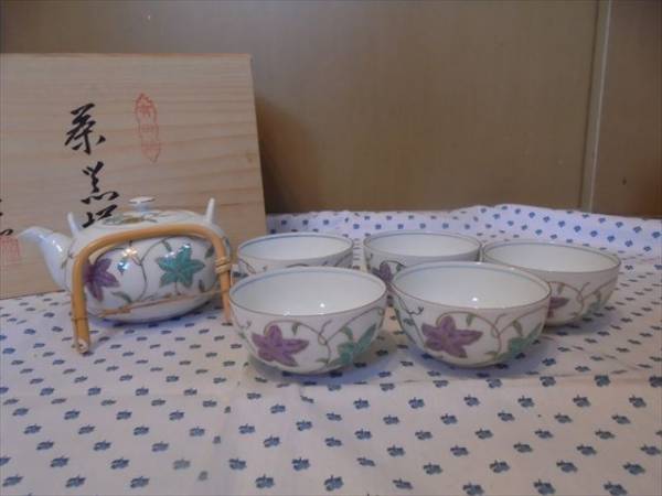 新品★有田焼★茶器揃★急須、湯呑5客、葉柄、寿泉窯