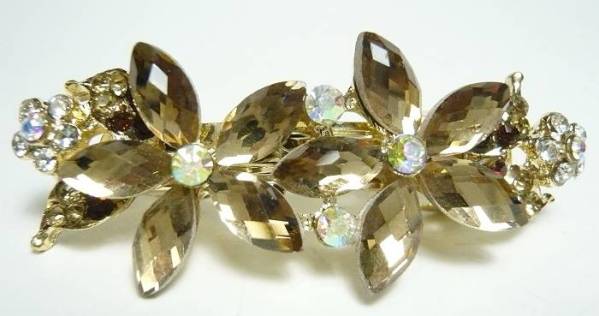 前髪 サイドに クリスタルダイヤカット 花 バレッタ  茶色