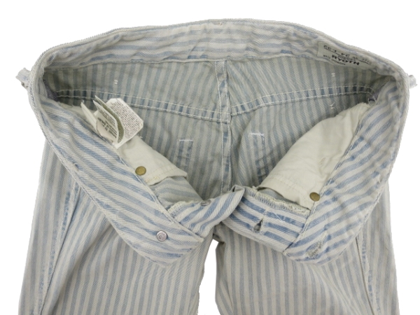 ヒッコリーストライプ(ブルー) ヴィンテージウォッシュ加工 ボタンフライ
