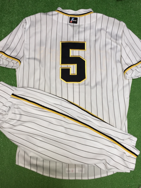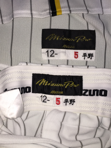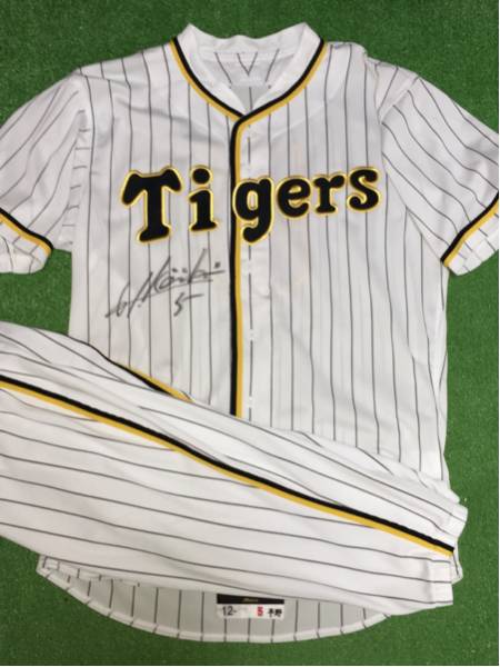 阪神の平野恵一選手が’12シーズンに実使用した直筆サイン入り復刻ユニフォーム上下です。