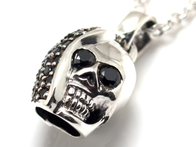 シルバーペンダント スカル髑髏&ブラックジルコニア