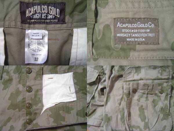 商品名:ACAPULCO GOLD カモフラージュ柄カーゴハーフパンツ サイズ:表記32 平置き43,5cm×2L(股下)23cm (股上)33cm サイド全長54cm 裾幅32cm×2※素人採寸の為多少の誤差はご了承下さい。 カラー:グリーン、カーキ系カモ 状態:美品。MADE IN USA。コットン100%。ボタンフライ。ポケット×6(サイド、バック=ボタンフラップ)。ダブルシート。使用感少なく美品です。 発送方法:レターパックプラス(配達記録付600円) ※USED品になりますので神経質な方、ご理解の無い方の御入札はお控えください。送料、振込手数料は落札者様の御負担となります。ノークレーム、ノーリターンでお願い致します。