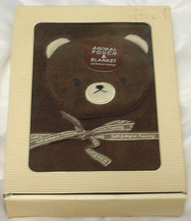 熊顔のポーチとブランケット(濃茶)。