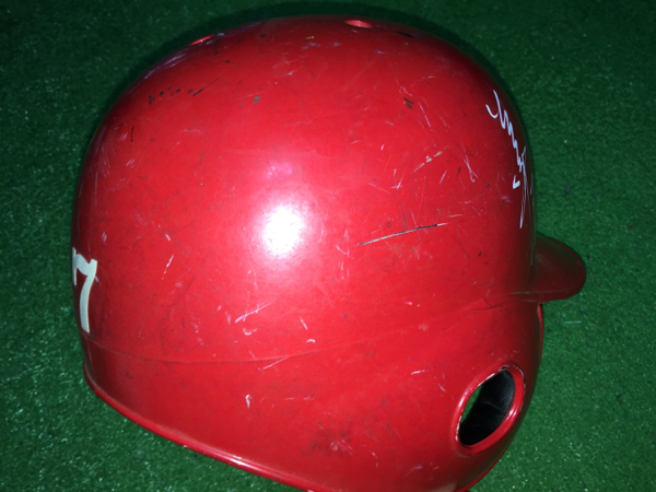 広島東洋カープの野村謙二郎選手が’00シーズン公式戦で実使用した直筆サイン入りヘルメットです。美津濃製のOサイズです。