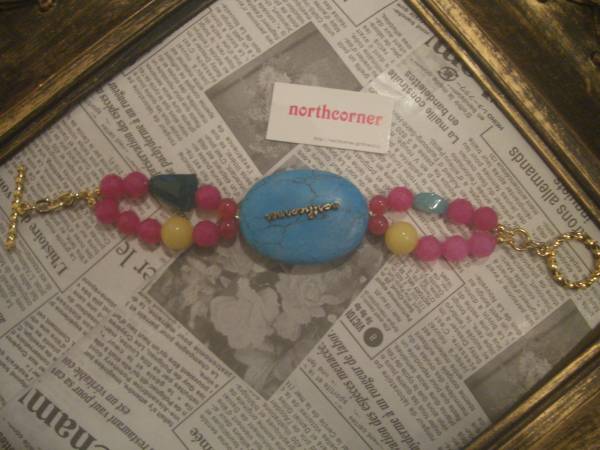 こちらはタグ有り、タグ無し両方有りますがすべて未使用新品♪ NORTHCORNERの商品です♪ 長さは2枚目画像の金具の隅から隅まで計って大体19センチほどで,1番大きなトルコ石のサイズが約横縦4×3センチほど♪ 大きな石には前にも後ろにもnorthcornerの刻印があります♪ ポップな配色のオシャレなブレスです(#^.^#) 定価12600円☆ 気に入ってくださった方、格安ですのでNCNRで御了承いただける方のみで、どうぞ宜しくお願いします!(^^)! 他にも可愛い物を沢~山出品しておりますので是非ご覧下さい(^_-)-☆ まとめて取引はごめんなさいですが、同梱は大歓迎です♪ 必ず自己紹介をご覧くださいませ!! |