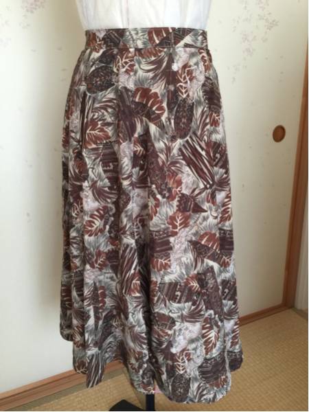 昭和レトロ70'レアジャングルにひょう柄フレアースカートです。サイズは9AR63丈70両脇にゴムが入っています。