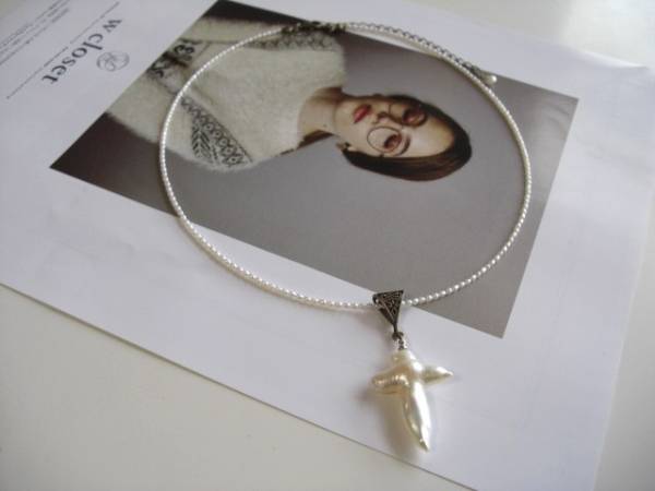 天使の贈り物・・シリーズです♪ジャンヌのパール・・ふんわりやさしいオフホワイトの淡水パールのネックレスです♪極小の淡水パールに大き目のクロスの淡水パールを合わせて大人のロマンチックしています♪33×22ミリ位のクロスは取り外し出来ますので画像のように極小の淡水 パールだけで着けられても素敵です♪極小の淡水パールは3×2ミリ位です♪ネックレスの長さは45センチ+アジャスター10セン チで最長55センチ位です♪お揃いのブレスレットも出品しています♪シンプルで飽きの こないいつまでも着けられるデザインを考えて作りました!ハンドメイドをご理解頂いてノークレーム、ノーリターンでお願いします