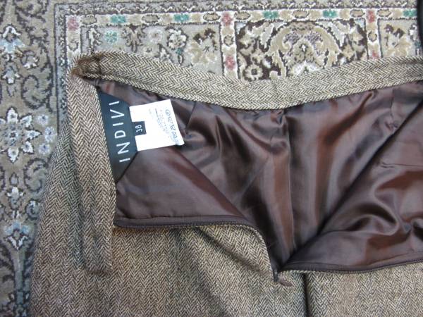 【即決!】★INDIVI ヘリンボーンタイトスカート 日本製★茶38★