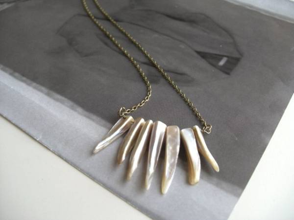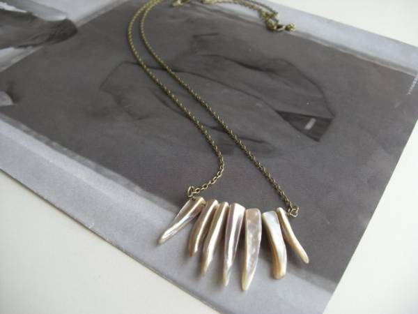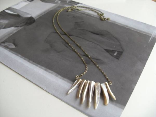 女の子の時間・・シリーズです♪華やかなベージュ色を集めて・・華やかなベージュ色のシェルのネックレスです♪7×20ミリか ら8×35ミリ位の円錐型のシェルは華奢なチェーンを合わせました♪長さは72センチ+アジャスター10センチで最長82センチ位です♪お揃いのネックレスやブレスレットも 出 品しています♪♪シンプルで飽きのこないいつまでも着けられるデザインを考えて作りました!ハンドメイドをご理解頂いてノークレーム、ノーリターンでお願 いします