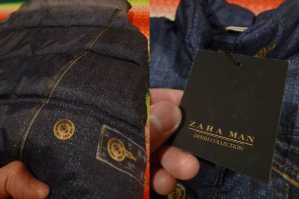 タグ付き ZARA MAN  デニム柄  転写ベスト  Mサイズ ダウンベスト ザラ