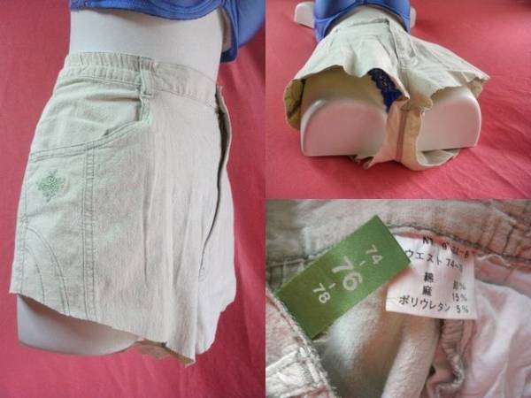 ・USED リメイク品?ショートパンツ サイズW74-78 薄グリーンです。