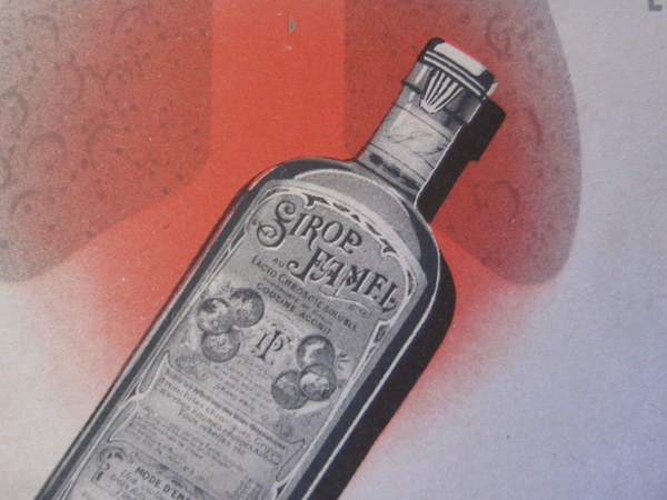 薬?シロップのびんと肺のイラストです。