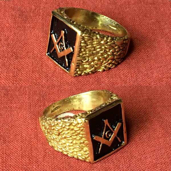 ◆説明:レプリカのフリーメイソンリングになります。神(GOD)と幾何学(geometry)の意味の「G」ロゴがあしらわれています。合金製、艶のあるゴールドカラーになります。。 ●se2602