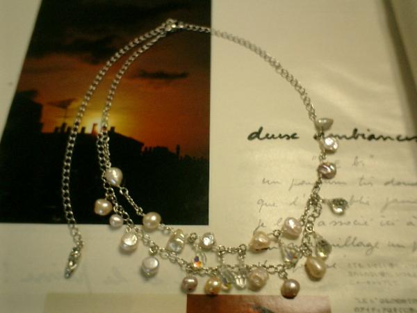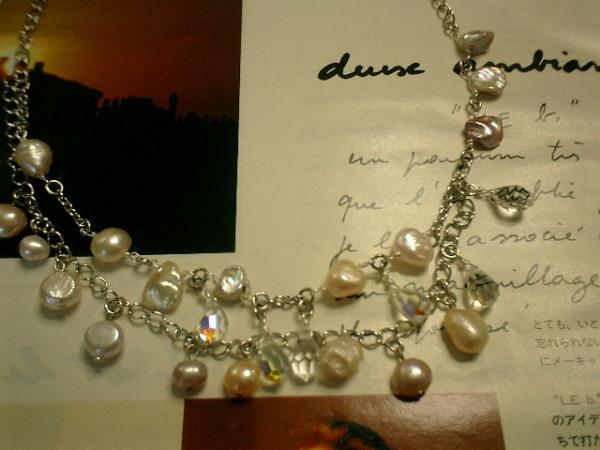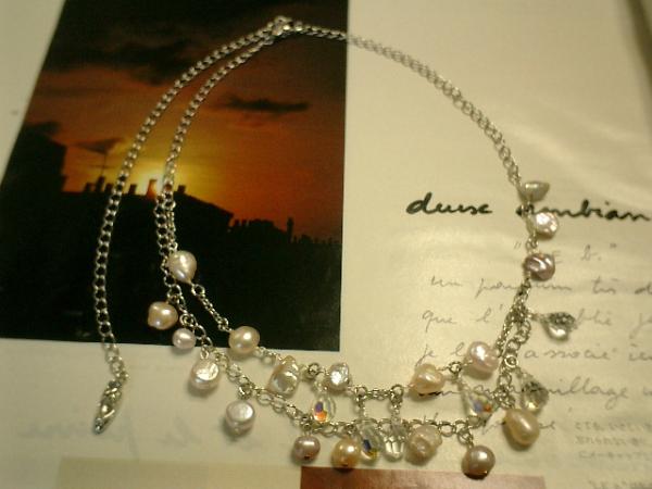 小さな貴婦人♪淡水パールとチェコのしずくでロマンチックなネックレスです。繊細で可愛い2連のネックレスです♪7ミリから11ミリ位までの淡いピンクやオレンジやオフ・ホワイトの淡水パールやけしパールをランダムにつないでいます♪♪♪繊細なカットのチェコのしずくは7×10ミリ位です。動くときらきらと輝いてとても可愛いです♪シンプルでいつまでも着けられるデザインを考えて作りました!長さは56センチ位で調節自由です♪短くチョーカー風にも着けて頂いても可愛いです♪お揃いのブレスレットも出品予定です♪ハンドメイドをご理解頂いてノークレーム、ノーリターンでお願いします