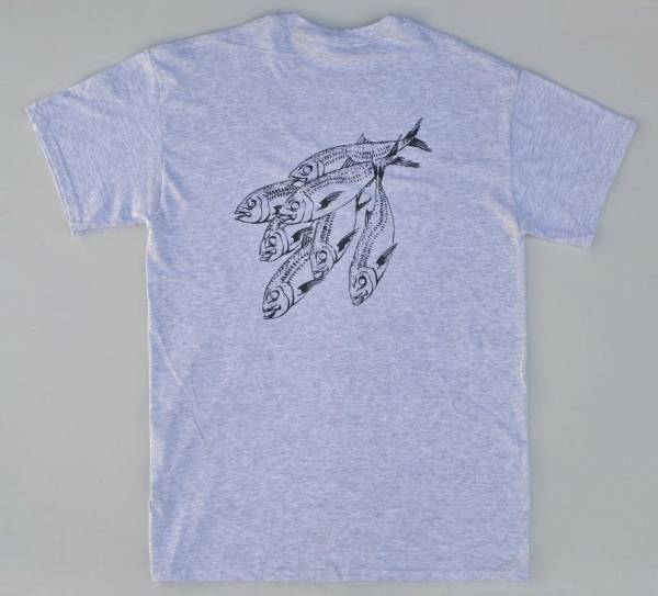 アジの開きTシャツ、グレー、送料無料、メンズM,半袖シャツ