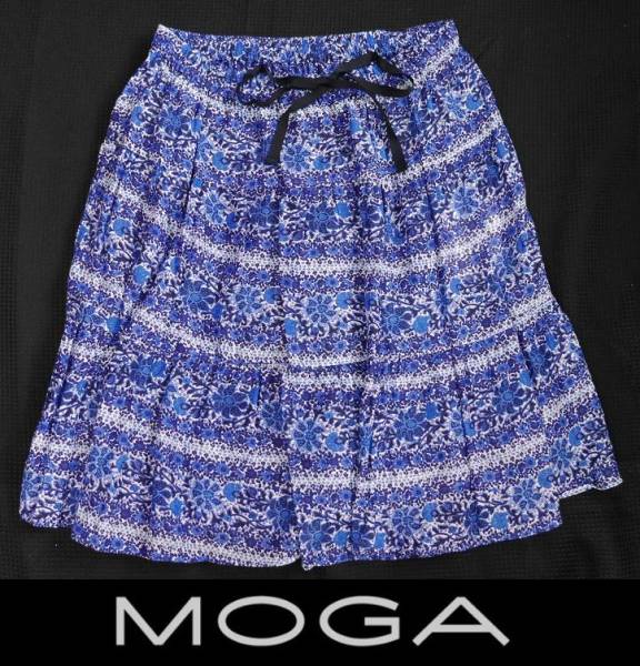| 【タイトル】 M.BLANK ブルー花柄フリルスカート ひざ丈 エムブラン MOGA BIGI ビギ モガ 9号 |