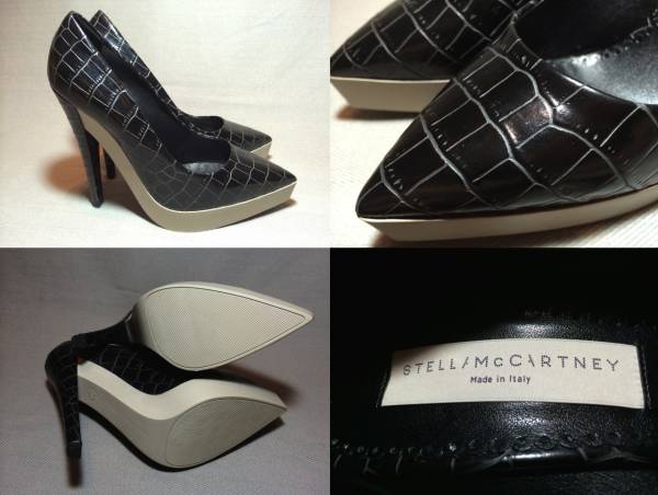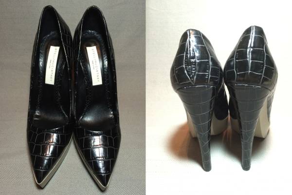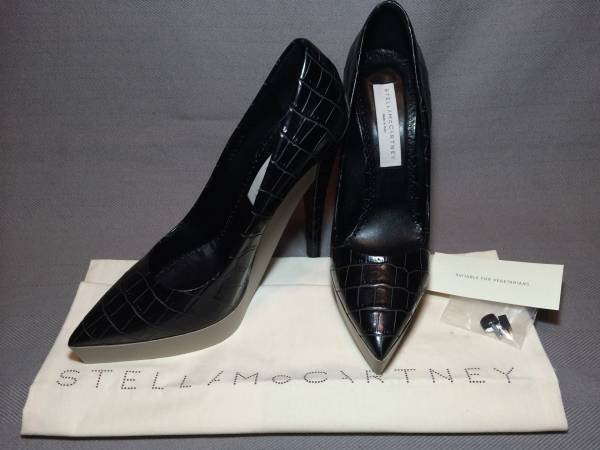 新品、ステラマッカートニーのクロコ型押しバイカラーパンプスです。