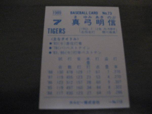 | ■カルビー1989年/No73真弓明信/阪神タイガース | ||