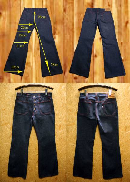 商品説明 | ご覧いただきまして、ありがとうございます。 【表記】W31 L31 【平置き・実寸】ウエスト内寸実測81cm 股下78cm 股上26cm ワタリ26cm 腿幅22cm 膝幅21cm 裾幅27cm ヒップ幅48cm いずれも平置きでの採寸になります 【素材】コットン100% 【カラー】インディゴ 【生産国】米国 【生産年月】1970年代前半 【企画・販売】リーバイ・ストラウス・アメリカ 【状態】古着 美品 【ディティール】 ●ボタンフライ(カッパーボタン) ●打ち抜きカッパ‐トップボタン(裏刻印375) ●4ポケット ●フロントポケット-パッチポケット ●ホワイトタブ両面刺繍BIG-E(R表示・レーヨン製100%) ●スレッドリベット ●裾裏シングルステッチ(裾上げがされていない工場出荷時の純正の状態です) ●インサイドシームダブルステッチ ●ノンパッチ ●米国コーンミルズ社製10オンスプリシュランクデニム LOT-NO.646-78 ◆70年代のごくわずかな期間に生産されていた610-78ビッグEベルボトムです。 ◆シルエットは、膝から裾にかけて急激に広がるベルボトムになります。 ◆フロントのパッチポケット、ボタンフライ、赤いステッチが個性的です。 ◆現在の濃紺インディゴデニムのままでも非常にかっこいいですし将来的に色落ちも楽しめます。 ◆非常にアジ(風合い)のある雰囲気です。 ◆廃盤の米国製です。 ◆入手するのが非常に困難なアイテムですので、すぐになくなってしまう可能性がございます。買い逃しのないようご覧ください。 【商品管理NO.0975】 ※洗濯による縮みは生じません。 ※ご利用のパソコンのモニターによってカラーの見え方が違ったり、撮影時のフラッシュにより実際の商品と色味が多少異なって見える場合がございます ※実寸サイズをご参考くださいますよう、お願い申し上げます。 ※計測には細心の注意を払っていますが、多少の誤差はご了承ください。 ※こちらの商品は、他サイトのオークションブースにも出品しております。ほかにおきまして、ご入札 落札 販売された場合、出品の取り下げをさせていただく場合がございます。予めご了承くださいませ。 |