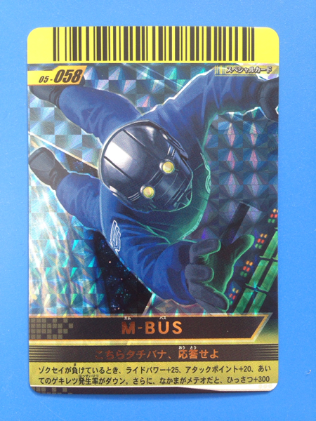 仮面ライダー、ガンバライドの第05弾から、スーパーレア・スペシャルカード、No.058《MーBUS》の登場です。発送は、普通郵便を利用します。(特にご希望のない場合)おとりまとめも可能ですが、送料に変動する場合がございます。また、送料のご請求は、自宅での計量を基準にご請求させていただいておりますので、実際の金額と差異が出る場合もございます。予めご了承ください。他にも多数出品中です。まとめてこの機会にいかがでしょうか?ご質問お待ちしております。
