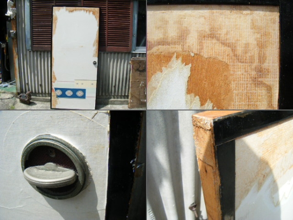 こちらはレトロな木製扉となります。表面が木目、裏面は和風で、蝶番が付いており、両面にノブがあります。和風側は和風式ノブです。和風側の壁紙が剥がれており、張りなおす必要があります。セカンドハンド品につき傷、汚れなどある場合がございます。視聴には問題ないと思われます。ご了承の上でご入札下さいませ。(*^-^*)