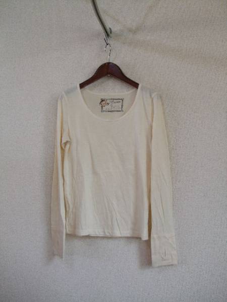 | 商品紹介 | シンプルなクルーネックの長袖カットソーです。 袖が少し長めで親指を通す穴が開いています。 色はクリームがかった白(キナリ)で他のアイテムと合わせやすいです。 《素材》 ポリエステル65% 綿35% |