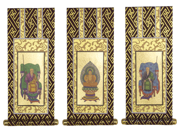 掛軸☆曹洞宗☆本尊☆両脇☆30代☆茶金・紺金