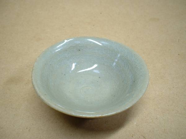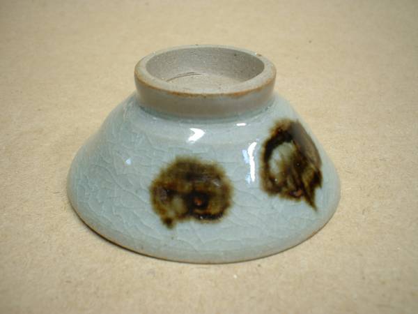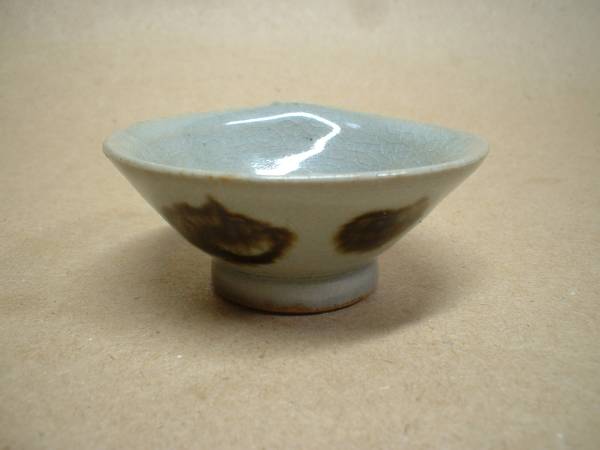 明治期頃の京焼です。慈姑が2個、描かれています。高台脇にひさご形の印があります。口径5.5×底2.5×高2.4センチです。キズはありません。