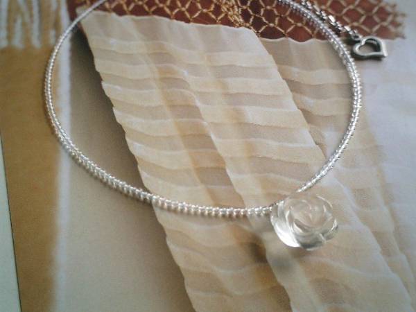 ノスタルジック・スタイル・・シリーズです♪水晶と薔薇のネックレスです♪3ミリのラウンドの水晶に繊細なカットの18ミリ位の水晶の薔薇を合わせて神秘的な表情です♪長さは38センチ+アジャスター12センチで最長50センチ位です♪♪お揃いのブレスレットも出品しています♪♪シンプルで飽きのこないいつまでも着けられるデザインを考えて作りました!ハンドメイドをご理解頂いてノークレーム、ノーリターンでお願いします