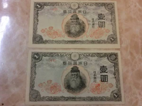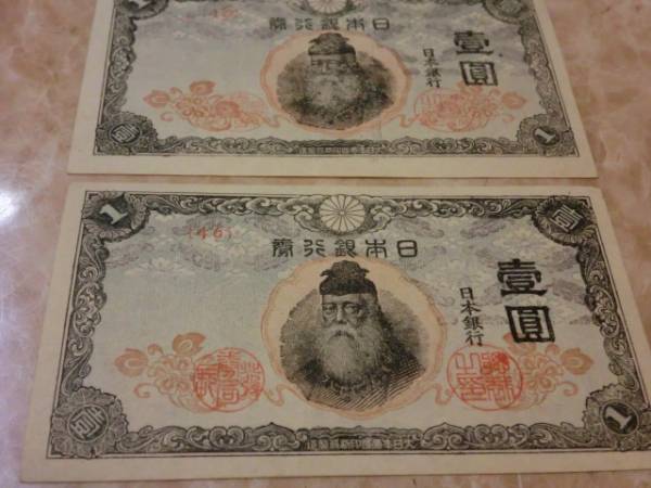 改正不換紙幣1円 中央武内1円の極美品を2枚です。