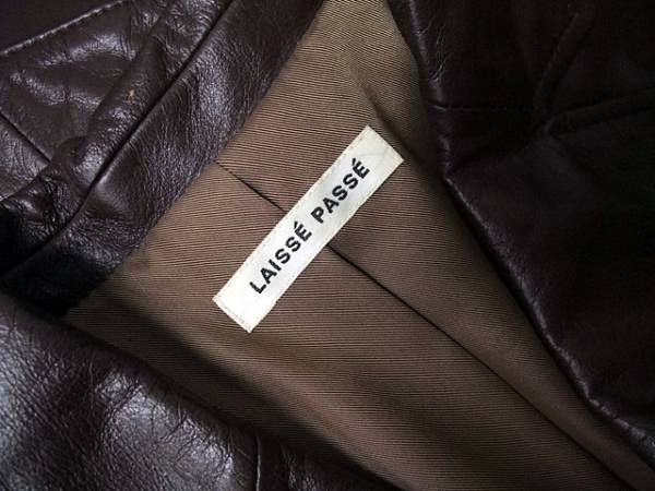 LAISSE PASSE リアルレザーロングコートです。色はブラウン、いい色です。ベルト付き。シルエットが綺麗なロングコートです。リアルレザーなのもポイント高いですよ。◆サイズは不明で着丈約97.5cm・肩幅約37cm・袖丈約56.5cm・身幅約41cmです。◆USEDですが状態はとても良好です。◆