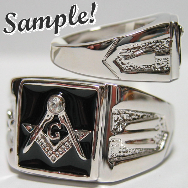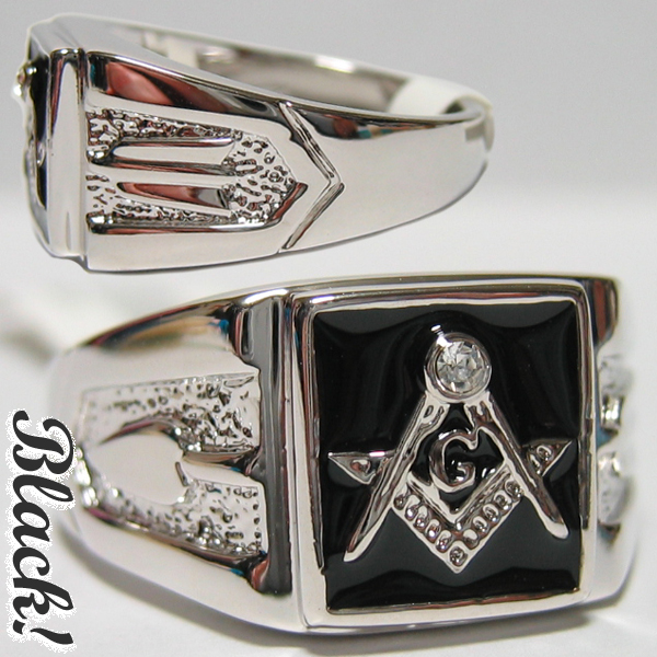 ♪ フリーメイソン・メイソニック・シンボルリング。CZダイヤモンドをトップに配した綺麗なリングです。ブラックエナメルにシルバーボディーカラーになります。未使用新品ペーパータグ付き。さり気ないお洒落に、お薦めお買い得の1本!