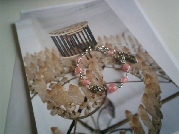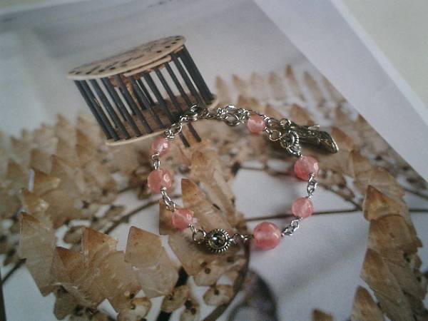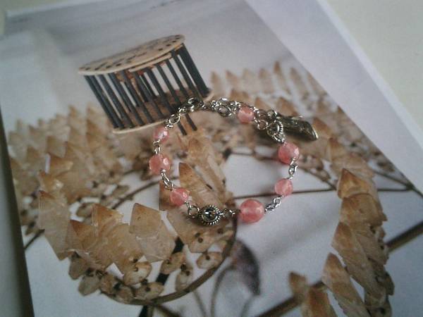 フレンチ・シック・・シリーズです♪大人色のチェリー・・シックなローズピンクのチェリークォーツのブレスレットです♪甘すぎないローズクォーツにデザインメタルを合わせて大人のロマンチックしています♪ローズクォーツは6ミリ、8ミリのラウンドカットです♪長さは全長23センチ位で調節自由です♪お揃いのネックレスも出品しています♪♪ハンドメイドをご理解いただいてノークレーム・ノーリターンでお願いします♪