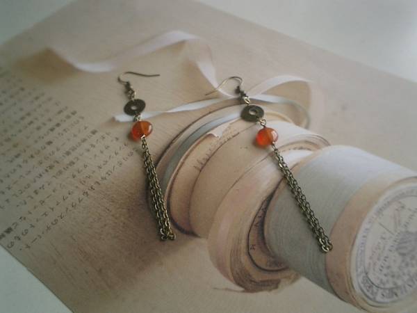 ロゼッタのお気に入り・・シリーズです♪ネオ・ボヘミアン・・可憐なカーネリアンのピアスです♪ペア1組です♪コインのカーネリアンにシックなデザインチェーンを合わせてネオ・ボヘミアンしています♪9ミリのコインのカーネリアンはデザインチェーンを合わせました♪長さは全長10センチ位です♪イヤリングにも変更出来ます♪お揃いのネックレスやブレスレットも出品しています♪♪シンプルで飽きのこないいつまでも着けられるデザインを考えて作りました!ハンドメイドをご理解頂いてノークレーム、ノーリターンでお願いします