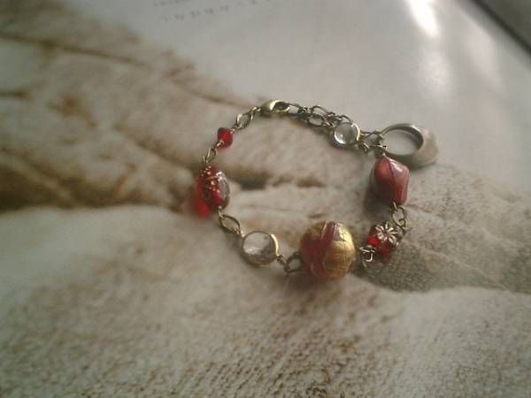 シック・フレンチの定義・・シリーズです♪オリエンタルな赤・・深い赤のブレスレットです♪ベネチアビーズやシャネルビーズやモダンビーズなど個性的な素材を集めて神秘的な表情です♪6ミリから18ミリ位までの丸玉やオーバルカットやナツメ型、Sラインなど大きさ違い、デザイン違いです♪長さは全長23センチ位で調節自由です♪♪お揃いのネックレスやイヤリングも出品しています♪♪シンプルで飽きのこないいつまでも着けられるデザインを考えて作りました!ハンドメイドをご理解頂いてノークレーム、ノーリターンでお願いします