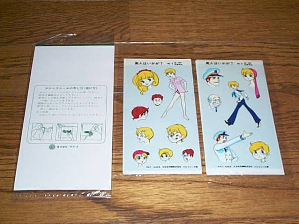 当時物です。メーカーはマルイです。版権付きです。№1、№2、№5、№6の4種セットです。各、汚れがあります。袋に2枚(2種)づつ入っています。マジックシール1枚のサイズは約15cm×8.cm位です。落札後はノークレーム、ノーリターンでお願い致します。発送は日本郵便のレターパック ライト(¥430円)にての発送です。落札金額+¥430円です。保険付き希望の場合ゆうパックにて発送します。発送方法は以上の方法でしか対応できませんのでご理解の上 入札お願い致します。