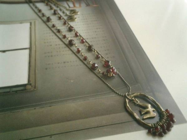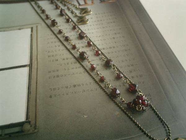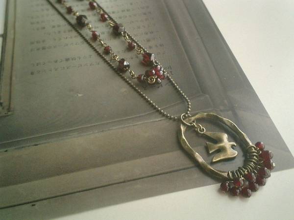 エキセントリック少女・・シリーズです♪ベネチアへの旅・・深い赤のガーネットのネックレス2本セットです♪鳥さんのメタルチャームを合わせてアンティークモダンな表情です♪35×25ミリのメタルリングには鳥さんと4ミリの丸玉のガーネットを合わせました♪繊細なボールチェーンを合わせてクラシカルなデザインです♪長さは74センチ+アジャスター12センチで最長86センチ位です♪5ミリから8ミリ位までのタンブルカットのガーネットには11ミリ位のガーネット玉を合わせて可憐な表情です♪長さは全長65センチ位で調節自由です♪チョーカー風にされても素敵です♪それぞれ単品でも出品しています♪お揃いのブレスレットも出品しています♪シンプルで長く着けていただけるデザインを考えて作りました♪ハンドメイドをご理解頂いてノークレーム、ノーリターンでお願いします
