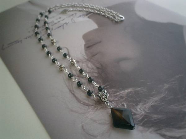 秋のヒロイン・・シリーズです♪大人の黒に魅せられて・・シックなオニキスのネックレスです♪丸玉のオニキスにブラウンオニキスのトップを合わせてキュートな表情です♪オニキスの丸玉は5ミリ位、トップのブラウンオニキスは23×17ミリ位のダイヤカットです♪薔薇のメタルチャームを合わせてアンティークモダンしています♪長さは全長72センチ位で調節自由です♪チョーカー風に着けられても素敵です♪♪お揃いのブレスレットも出品しています♪シンプルで合わせやすいデザインを考えて作りました♪ハンドメイドをご理解いただいてノーリターン、ノークレームでお願いします♪