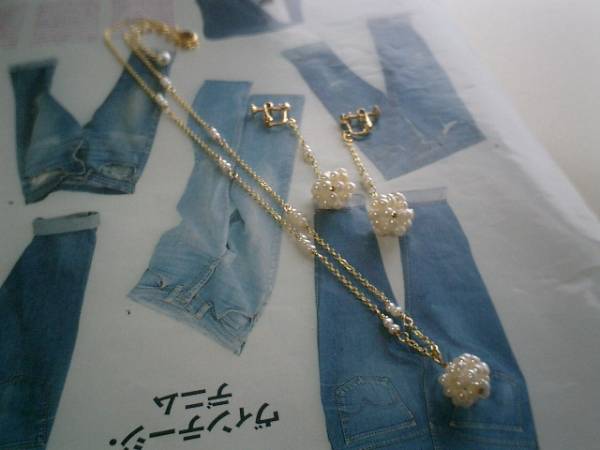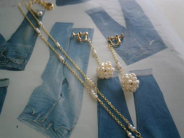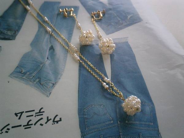 後ろボタンのワンピース・・シリーズです♪イブの夜に・・淡水パールのネックレスとイヤリングの2点セットです♪儚げでロマンチックな表情です♪ネックレスは13ミリ位の淡水パールボールに極小の芥子パールを合わせました♪長さは55センチ+アジャスター8センチで最長63センチ位です♪イヤリングは13ミリ位の淡水パールボールに芥子パールを合わせました♪長さは全長6・5センチ位です♪ピアスにも変更出来ます♪それぞれ単品でも出品しています♪シンプルで飽きのこないいつまでも着けられるデザインを考えて作りました!ハンドメイドをご理解頂いてノークレーム、ノーリターンでお願いします